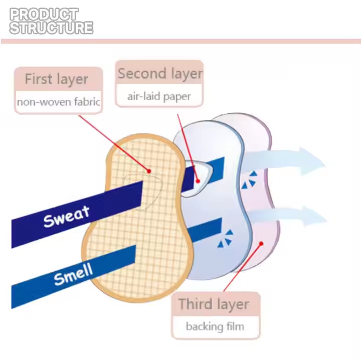 | ハイライト: | 吸収性のある使い捨て用下腕汗パッド,100 PC 単品 腕の下汗パッド,一回使用できる下腕の汗パッド 単品パック |